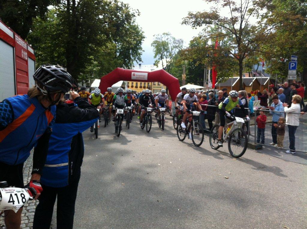 The start is on the market place in Oberwiesenthal where many spectators had gathered to see the 600 participants (the event was sold out). The weather was fine. Sunny but even a bit cold but absolutely nothing to complain about.